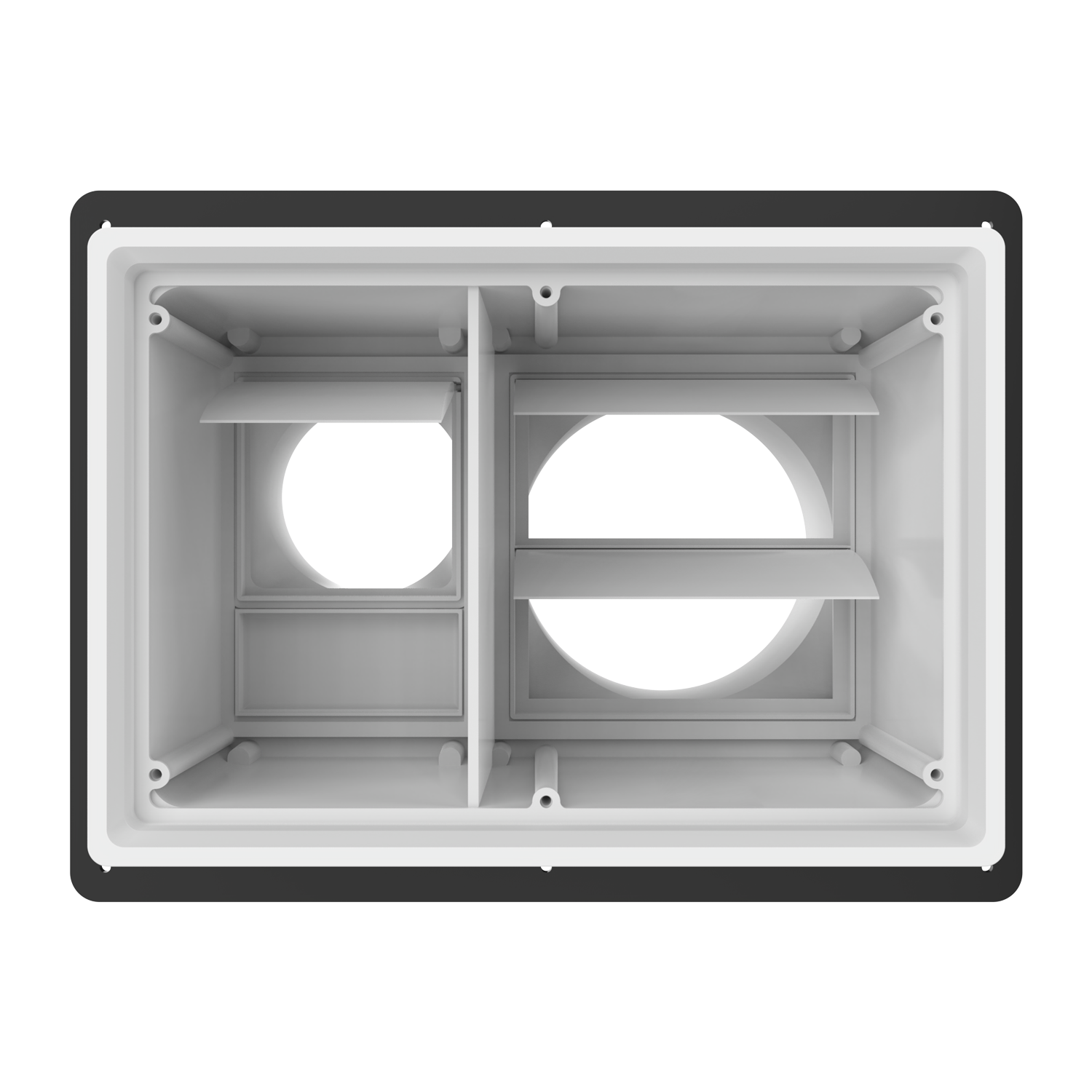 The molding process creates a monolithic box cavity that combined with integrated balanced gravity dampers XVentBox provides a superior barrier against wind driven rain.