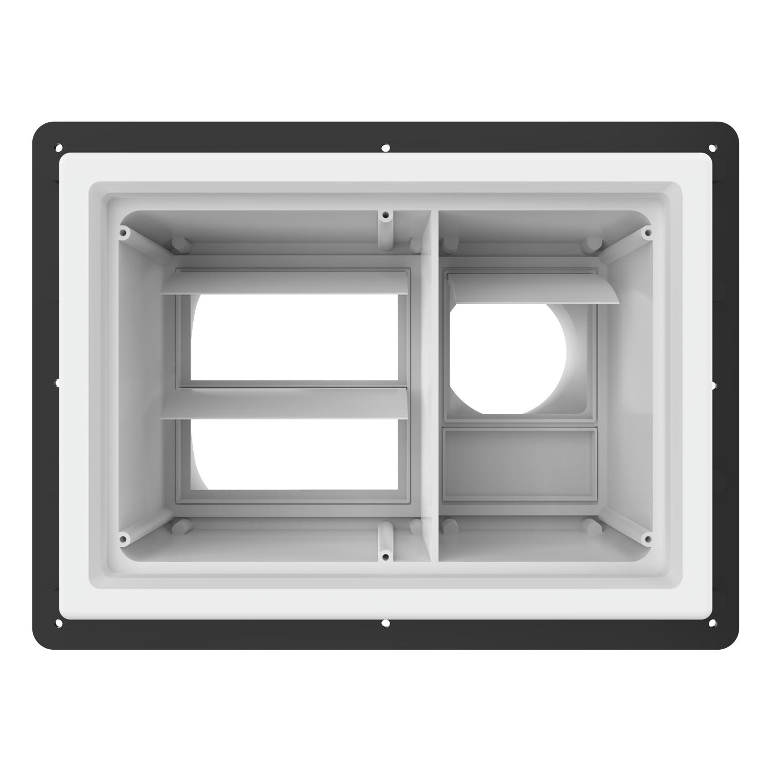 The molding process creates a monolithic box cavity that combined with integrated balanced gravity dampers XVentBox provides a superior barrier against wind driven rain.
