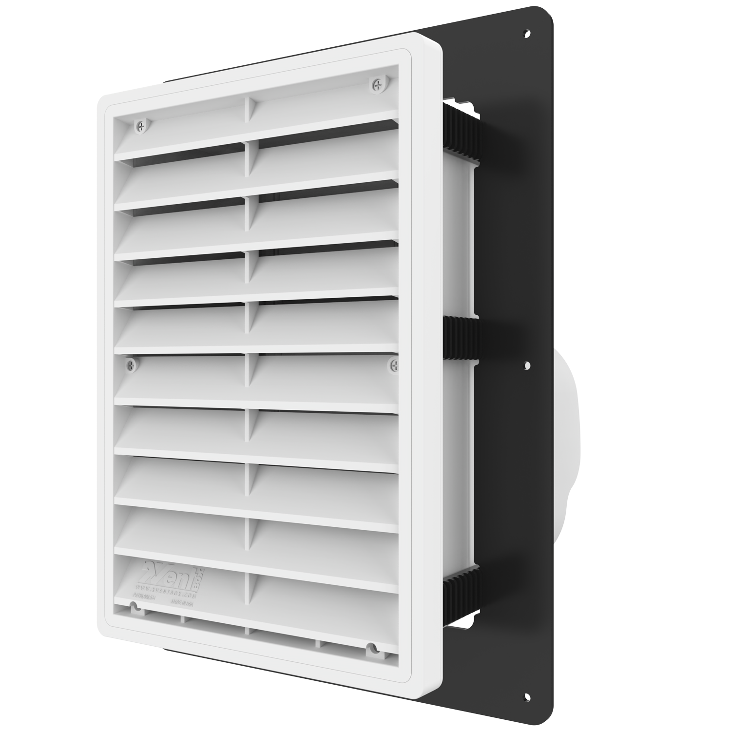 XVentBox incorporates a removable front louver and an integrated back draft damper for easy inspection and maintenance without damaging any weather-tight seals.