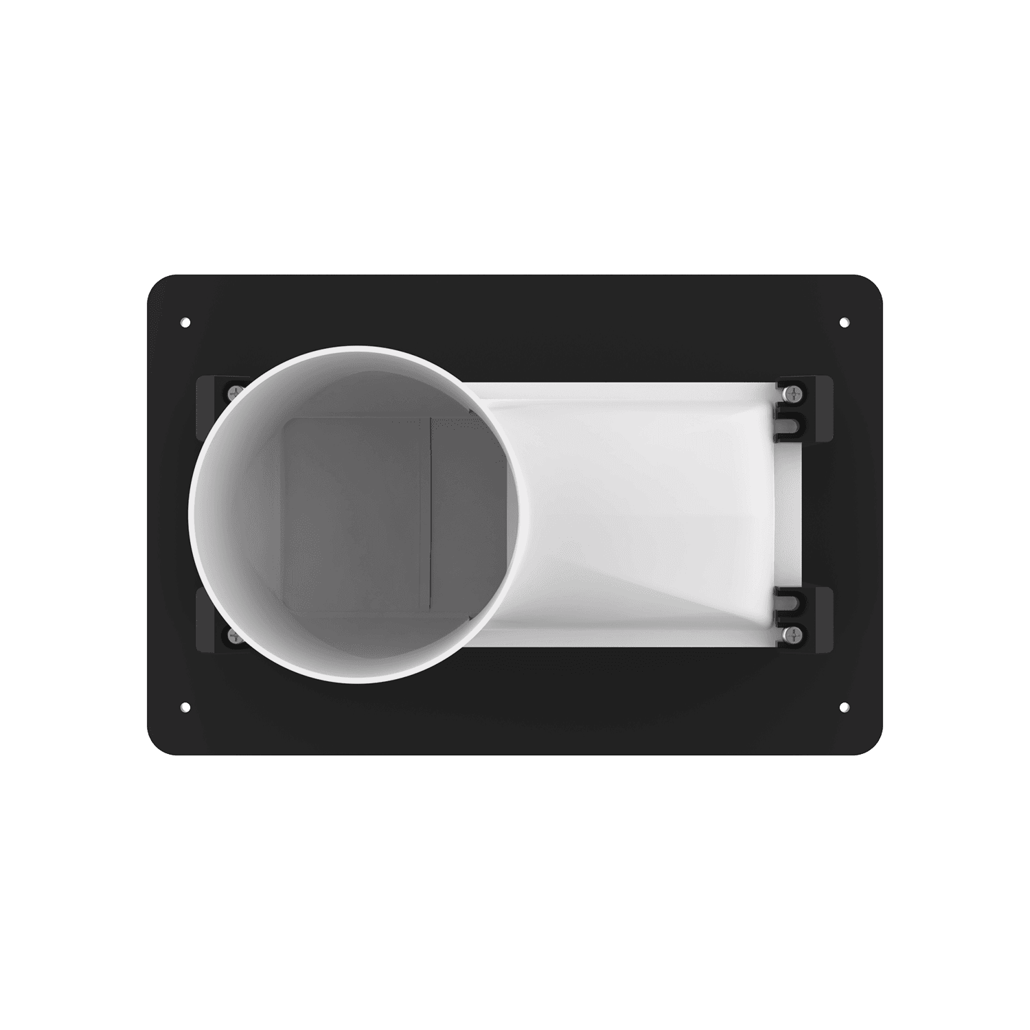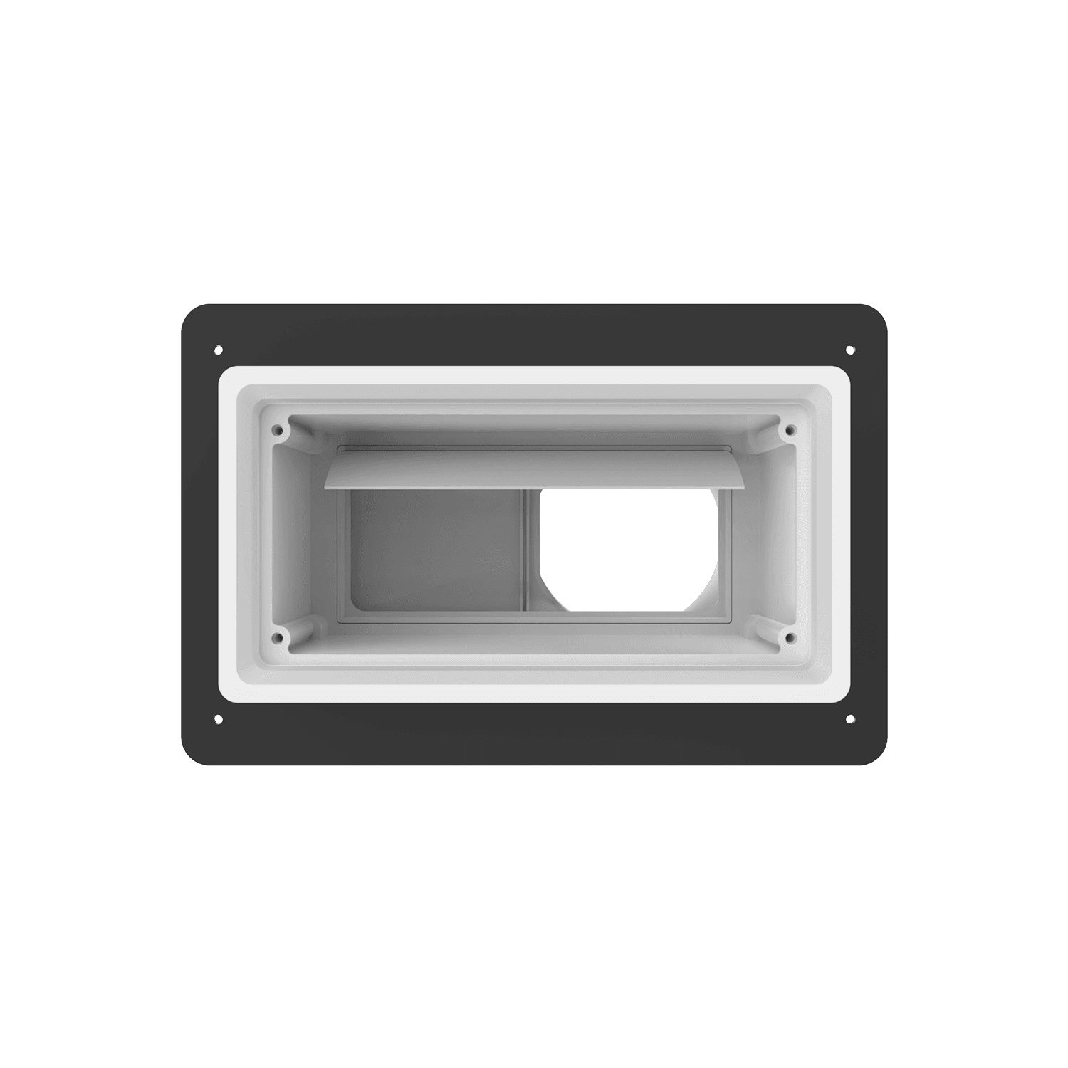 4″ horizontal low profile exhaust box for use with brick/stone, EIFS, stucco/siding greater than 7/8″ thick and similar exteriors. Includes gravity backdraft damper and adjustable mounting flange with an offset range of 1″-6″. Can be customized to fit unique field conditions.